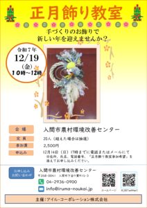 氏名、住所、電話番号、【正月飾り教室参加希望】を添えて
