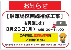 このたび『駐車場区画線補修工事』を下記の日程で実施いたします。